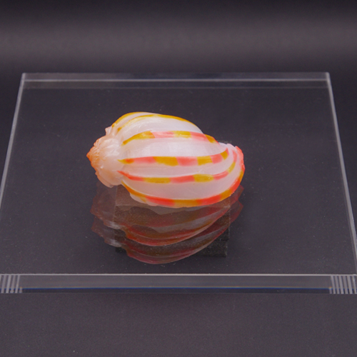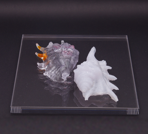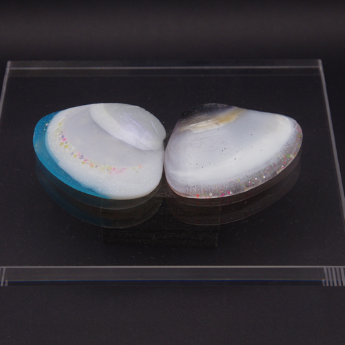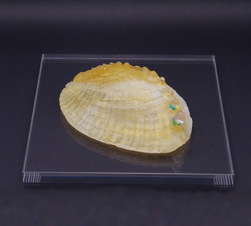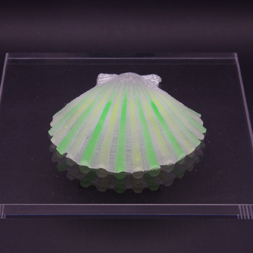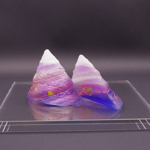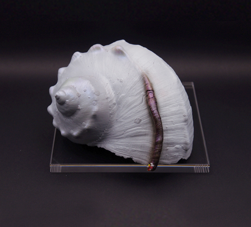 増え続ける海洋プラスチックが自然の循環の中へ取り込まれていく様子を貝のモチーフとして表現している。
